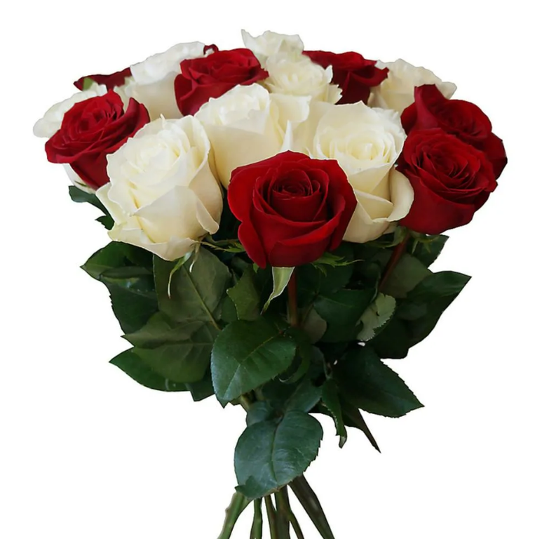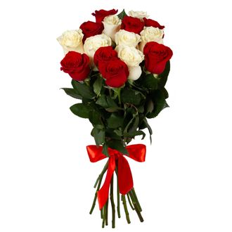 красные и белые розы 15 шт