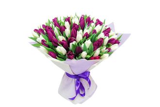 Добавить в избранное Убрать из избранного 101 белыЙ и фиолетовыЙ тюльпан 13332 можно купить в кредит Оформить заказ