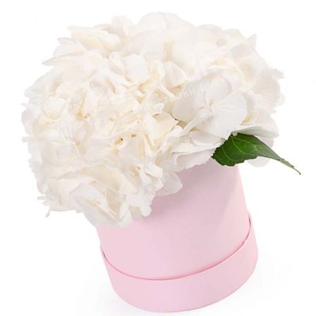 гортензия в розовой шляпной коробке