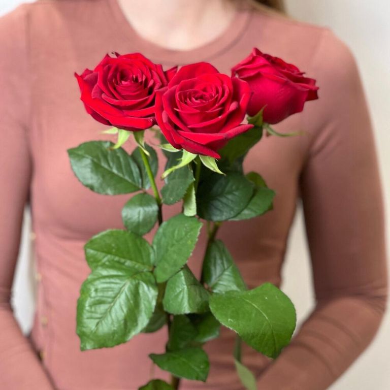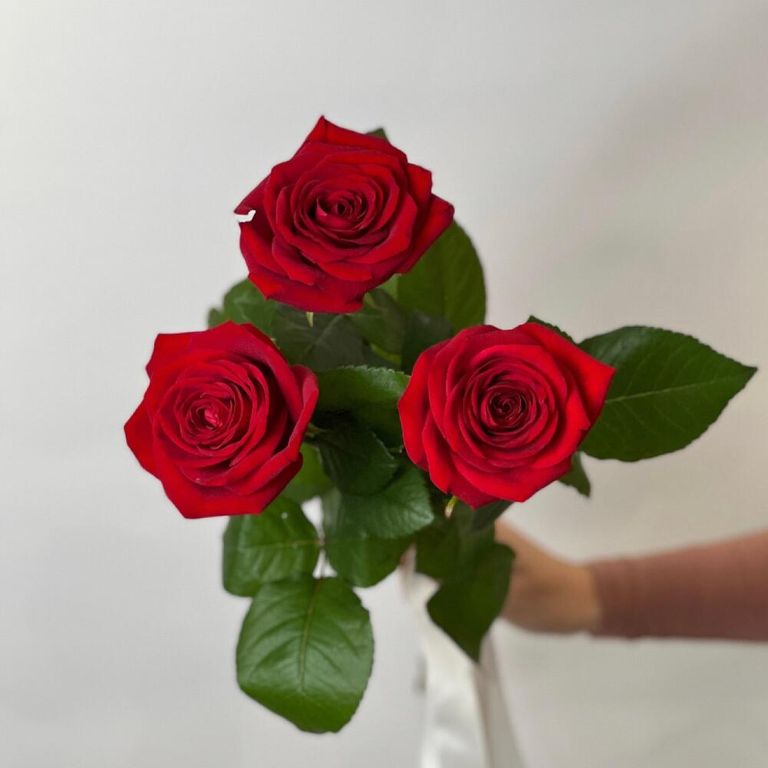 Добавить в избранное Убрать из избранного Букет из 3 красных роз 715 Оформить заказ Состав: Розы наоми - 3 шт. Лента Размер Высота - 50 смШирина - 10 см Состав: Розы наоми - 3 шт. Лента Размер Высота - 50 смШирина - 10 см