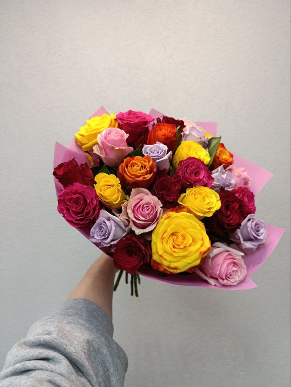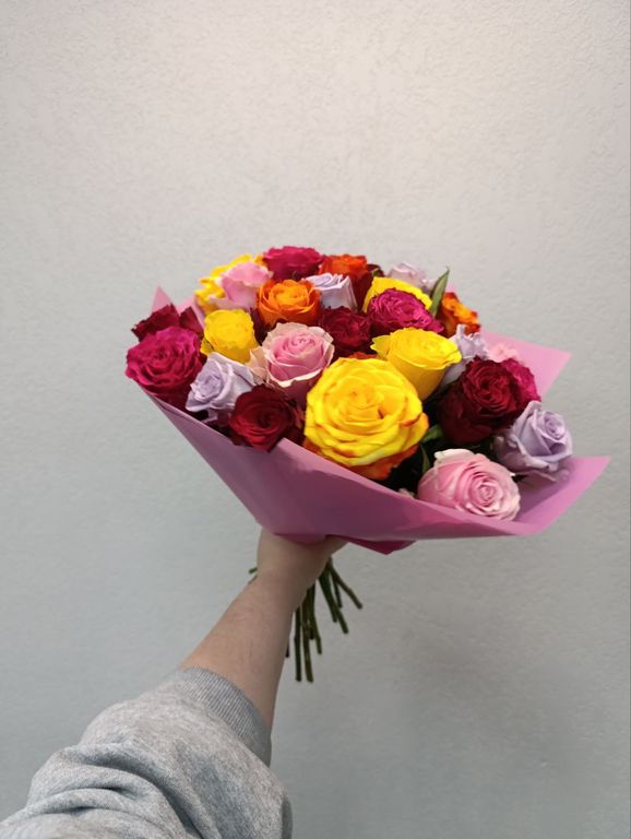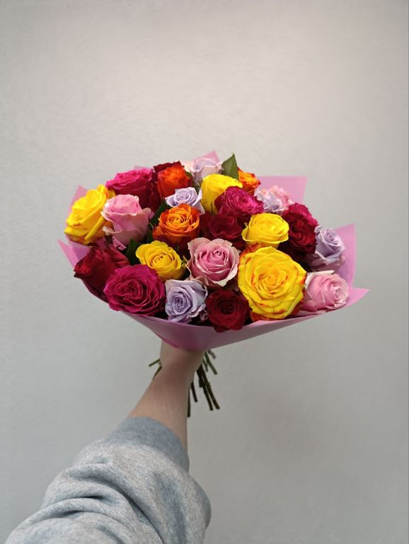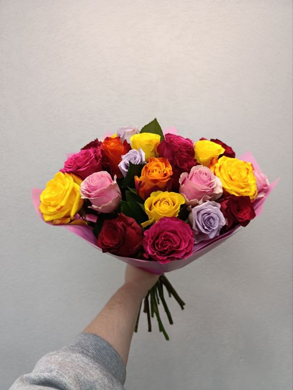 Изысканная композиция из 25 эквадорской розы микс в дизайнерской упаковке – это воплощение весеннего настроения и природной красоты! Бутоны премиум-класса, собранные в гармоничную палитру оттенков, создают яркий и запоминающийся букет.