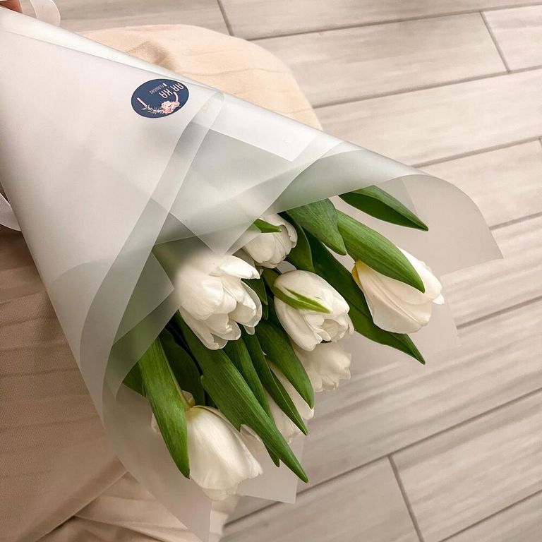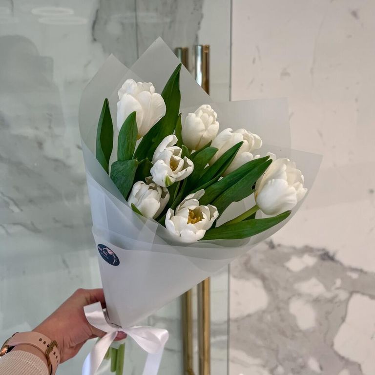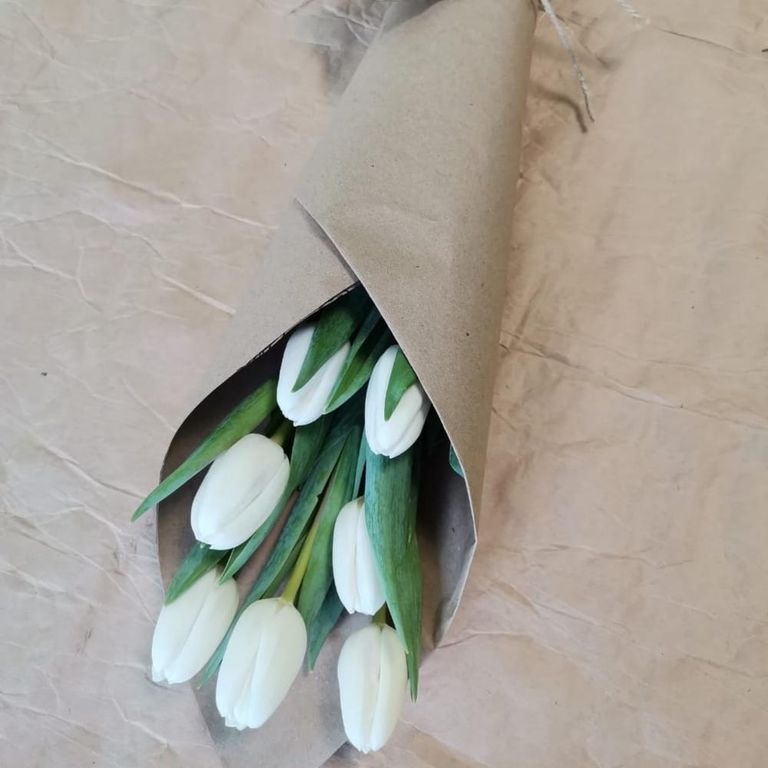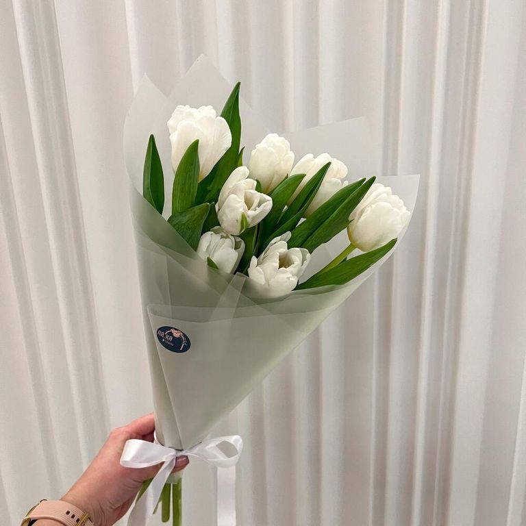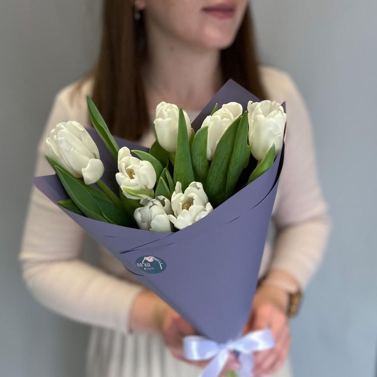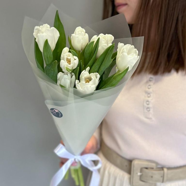 Прекрасный небольшой букет белых тюльпан
